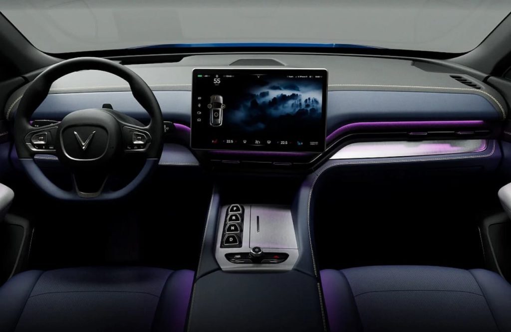 VinFast VF 9의 내부는 깨끗하고 미니멀하여 물리적 제어 장치를 가장 적게 사용할 수 있습니다. 대각선으로 15.6인치의 대형 조경 중앙 디스플레이가 실내의 초점입니다. 디자이너들은 물리적인 버튼을 최소한으로 유지해왔습니다.