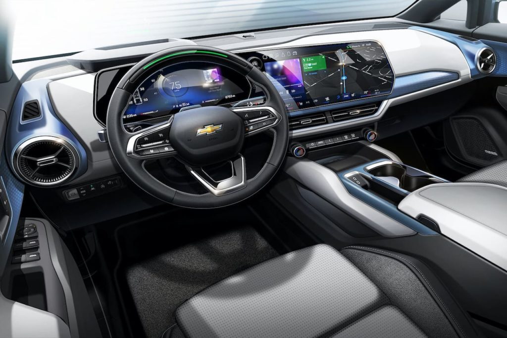 Chevrolet Equinox EV 인테리어는 두툼한 대시보드, 클럽 형태의 완전 디지털 계기판, 플로팅 효과가 있는 단일 수평 패널에 함께 수용된 터치스크린 인포테인먼트 시스템, 다소 컴팩트한 센터 콘솔로 구성되어 있습니다. 또한 기어 시프터 스토크가 없어 센터 콘솔에 충분한 수납 공간이 있는 것으로 보입니다. 센터 콘솔에는 두 개의 병, 스마트폰, 지갑, 열쇠와 같은 물건을 보관할 수 있는 작은 데크가 있으며 팔걸이 아래에도 더 많은 공간이 있습니다.