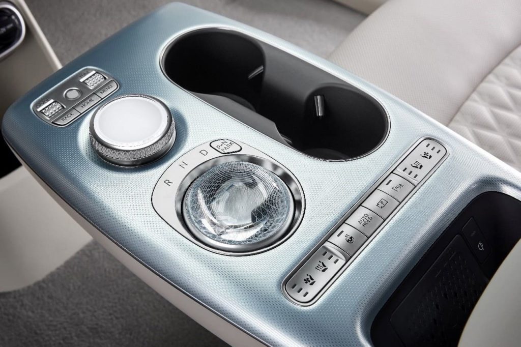 GV60의 내부 하이라이트는 크리스털 스피어 기어 셀렉터로, 차량이 꺼져 있을 때 주변 조명 시스템으로서 두 배가 될 수 있습니다. 이미지 원본:창세기