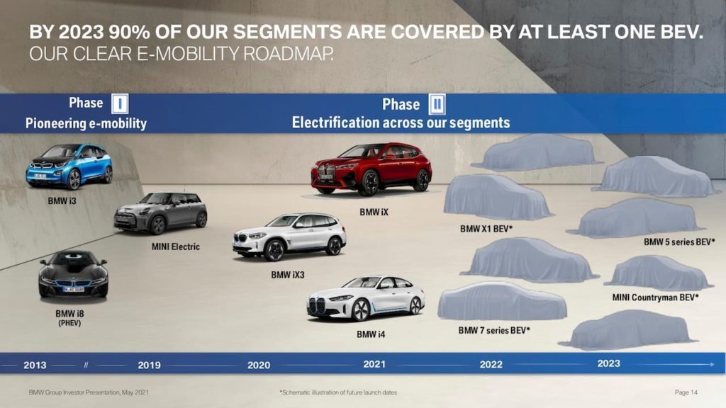 2021년 5월부터 투자설명회를 통해 X1, 7시리즈 EV 등 2023년까지 BMW그룹이 내놓은 전기차 출시를 확정했습니다.