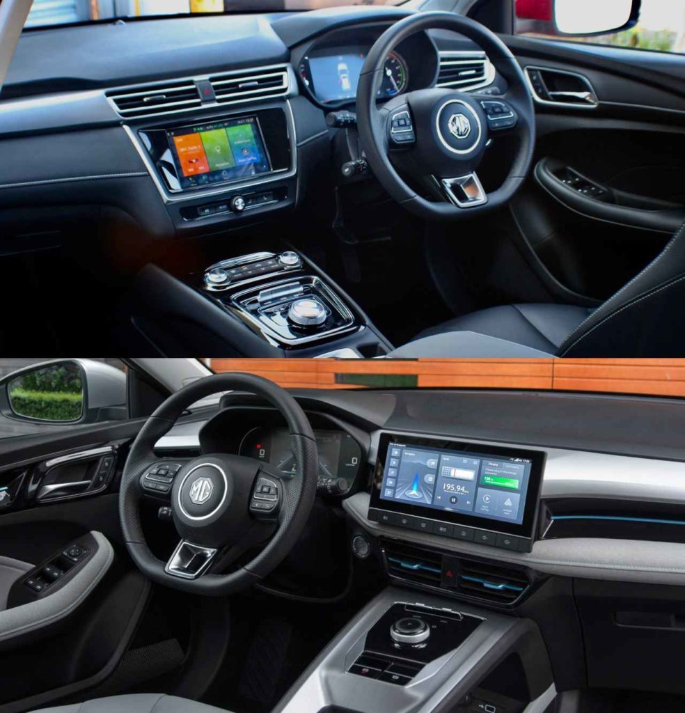 구형 MG5 EV(위)의 반디지털 계기판은 전체 디지털 클러스터로 교체됩니다. 이미지: MG 모터